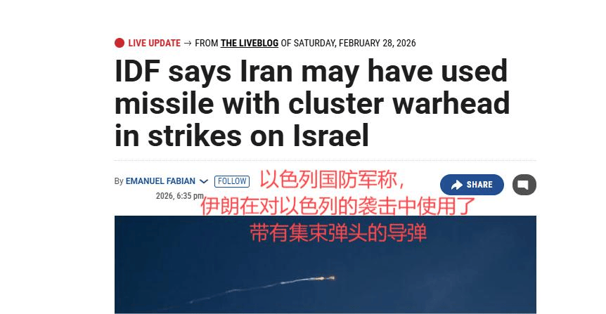 在中东这片复杂而多变的土地上,武力与战略的较量从未停息。2026年3月1日夜间,伊朗与以色列的军事对抗再度升级,以色列国防军证实,伊朗在对其核心区域进行打击时,首次使用了装配有集束弹头的弹道导弹。这一行动不仅标志着双方军事对抗进入新阶段,也让人们重新审视伊朗的军事能力和潜在威胁。