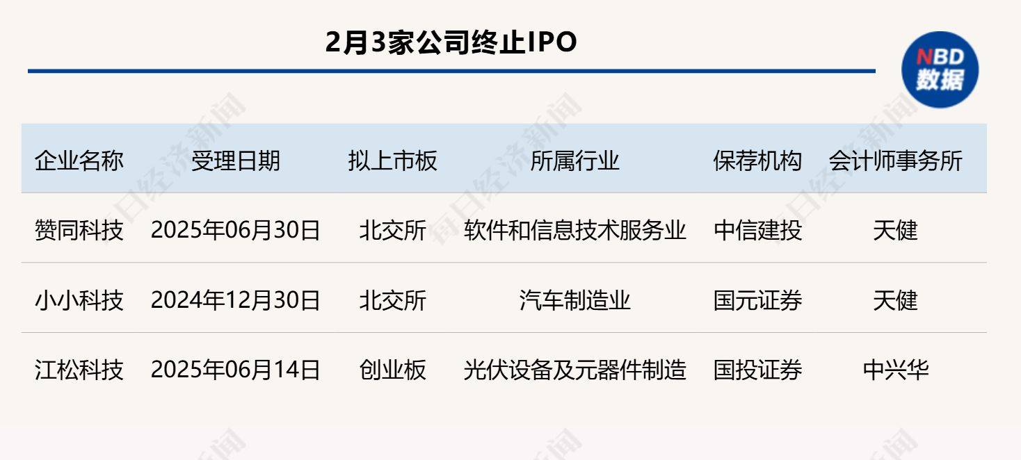 2月3家公司终止IPO, 赞同科技2025年上半年净利润亏损