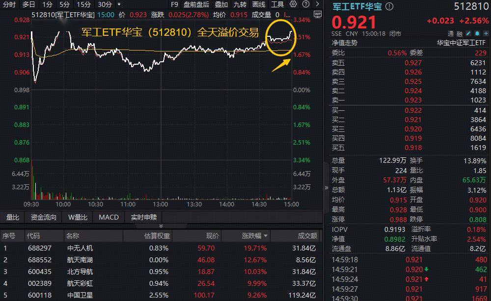 二、大变局!主力火速加码战略资产,军工ETF华宝(512810)上探3.34%,交投翻倍激增!成份股批量涨停!