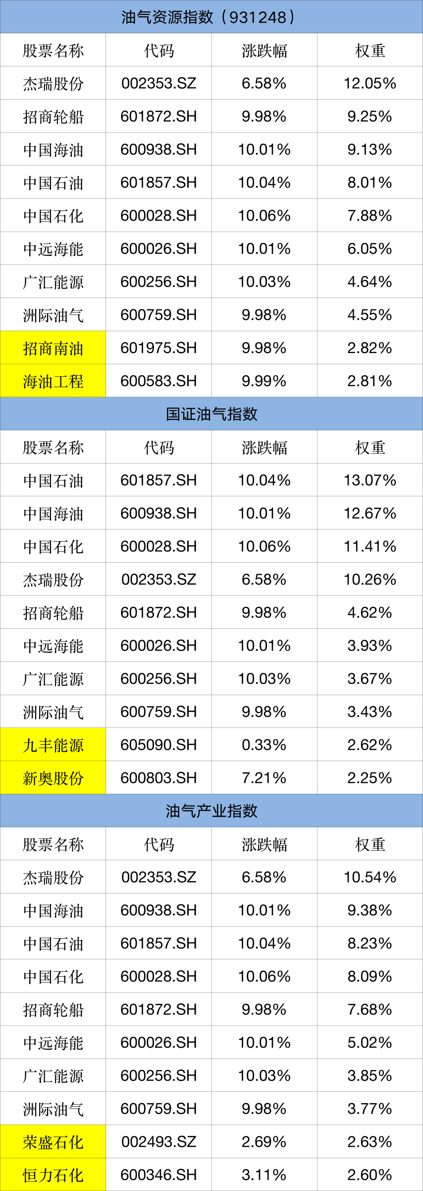 以下是今天主要A股油气股涨跌幅情况: