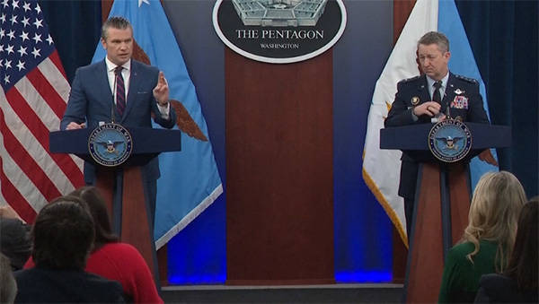 美国国防部长赫格塞思和参谋长联席会议主席凯恩举行新闻发布会视频截图