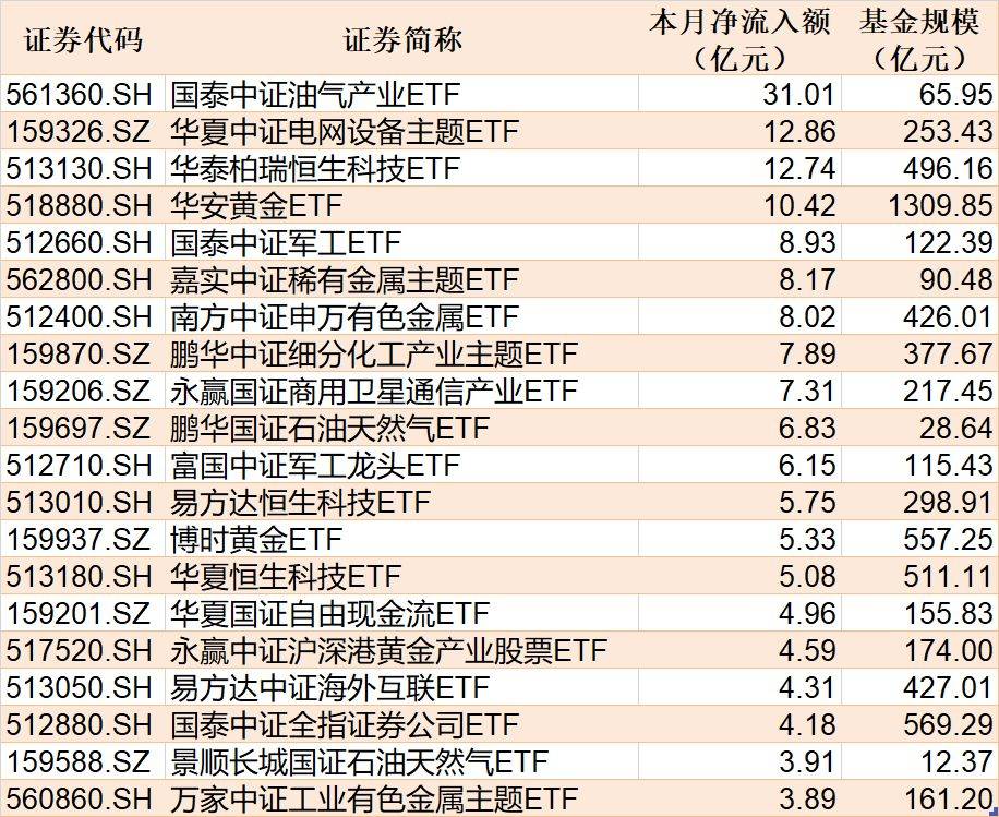 截至3月2日,本月资金净流入额居前20的ETF名单如下: