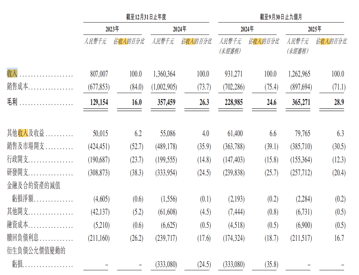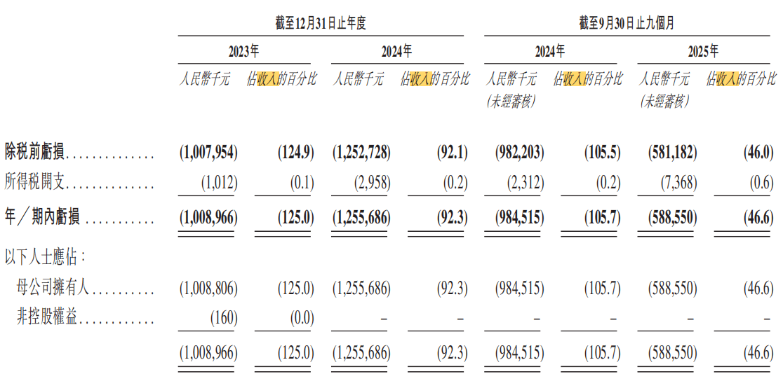 招股书显示,2023年、2024年及2025年前三季度(以下简称报告期),海柔创新分别实现收入8.07亿元、13.60亿元、12.63亿元,同期录得净亏损10.09亿元、12.56亿元、5.89亿元,累计亏损约28.53亿元。