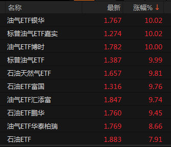 上证报中国证券网讯(记者 朱妍)中东局势骤紧,带动原油价格上行。Choice数据显示,截至3月3日11点15分,WTI原油期货价格涨幅达到1.7%。受此影响,截至3月3日上午收盘,油气类ETF领涨ETF产品,油气ETF银华、标普油气ETF嘉实等产品涨停。