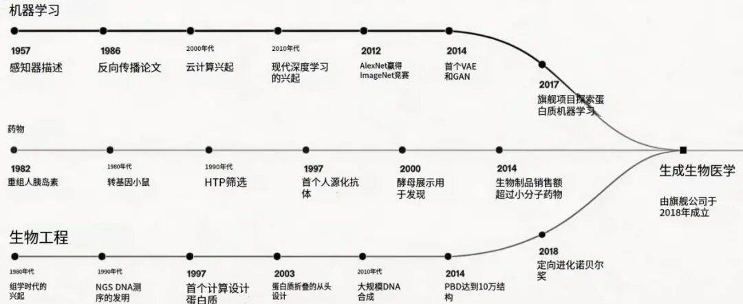 AI与药物、生物工程的发展、融合线 图片来源:Generate官网 由谷歌翻译