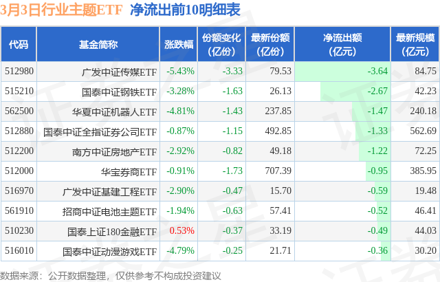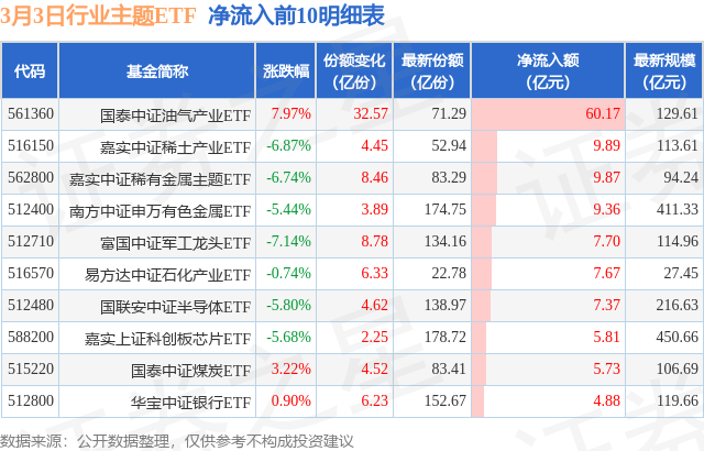 【ETF观察】3月3日行业主题ETF净流入183.82亿元