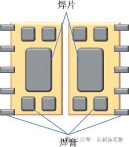 另一种方式是BTC器件大面积热沉焊盘采用焊片和焊膏结合焊接,引脚处采用焊膏。在印刷完锡膏后,在BTC器件热沉焊盘中间位置放置预成型焊片,焊片不涂覆助焊剂,如图8所示。