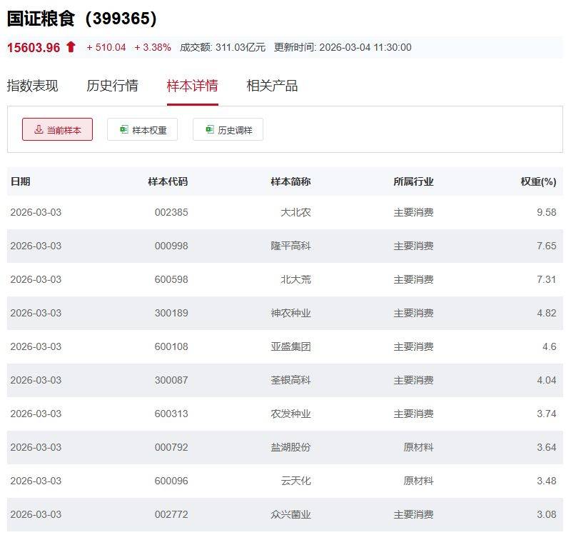点评:粮食ETF广发(159587)和粮食ETF(159698)今日上午涨幅分别达到2.94%和2.92%,其中,粮食ETF(159698)规模相对较大,其份额为4.52亿份,半日成交金额为1.32亿元。上述两只ETF追踪的是国证粮食产业指数,该指数反映沪深北交易所粮食产业相关上市公司的证券价格变化情况。