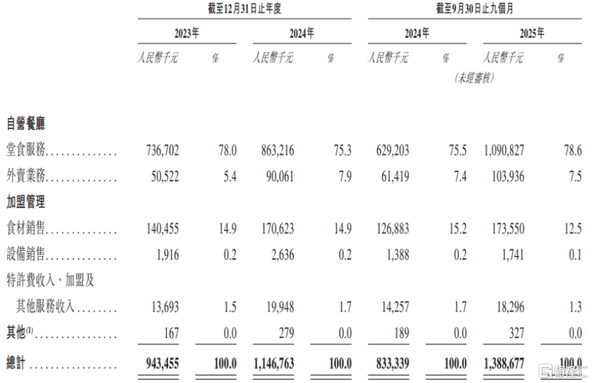业绩方面,2023年、2024年及2025年前三季度,比格披萨的收入分别约9.43亿元、11.47亿元、13.89亿元,对应的净利润分别约4751.8万元、4173.7万元、5165.1万元,每天总体餐桌翻台率分别为4.6次、4.8次、6次。