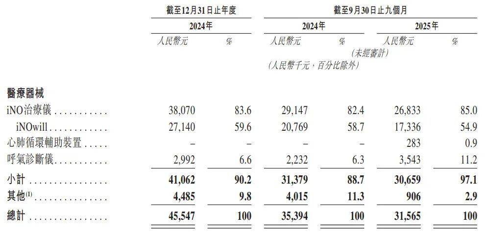 招股书显示,其核心产品iNOwill按销售收入计算,2024年已在国内iNO治疗市场占据首位。2024全年实现收入4554.7万元。