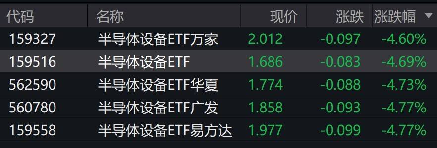 受盘面影响,半导体设备相关ETF跌超4%。