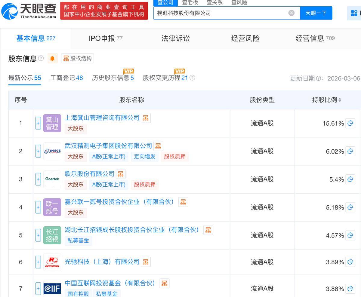 目前,视涯科技的注册资本为9亿元,法定代表人为顾铁,主要股东包括上海箕山管理咨询有限公司(下称“上海箕山”)、精测电子(SZ:300567)、歌尔股份(SZ:002241)、嘉兴联一贰号投资合伙企业(有限合伙)等。