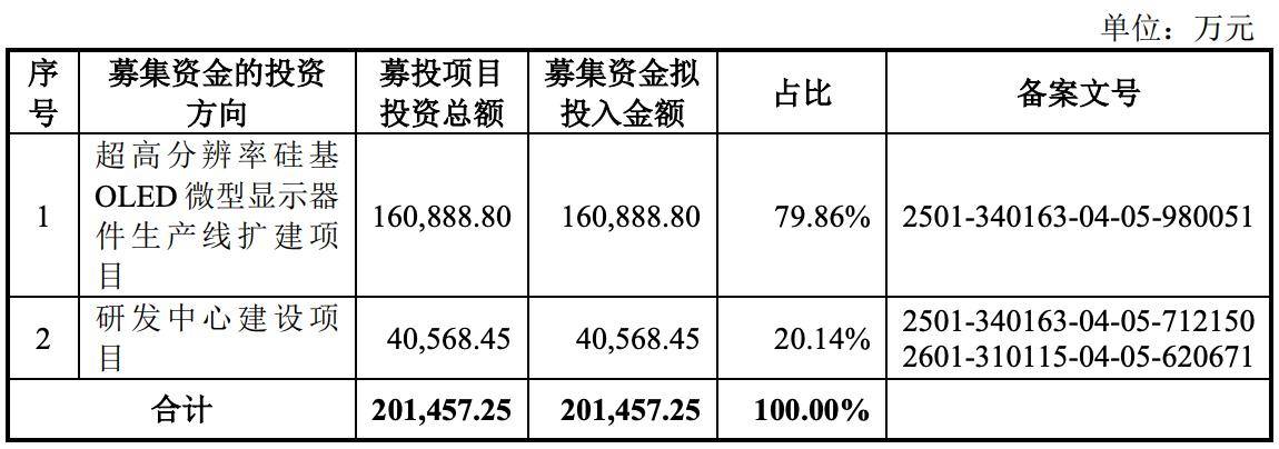 相比之下,研发中心建设项目包括“新一代硅基OLED驱动芯片技术研发项目”及“基于叠层白光OLED的高亮硅基微显示器件研发项目”,分为上海研发中心和合肥研发中心两个部分,实施地点分别位于上海市浦东新区和合肥市新站区。
