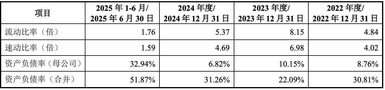 值得一提的是,视涯科技的资产负债率在2025年出现飙升的情形。截至2025年6月末,该公司的产负债率(合并)为51.87%,而2022年、2023年、2024年末分别约为30.81%、22.09%和31.26%。