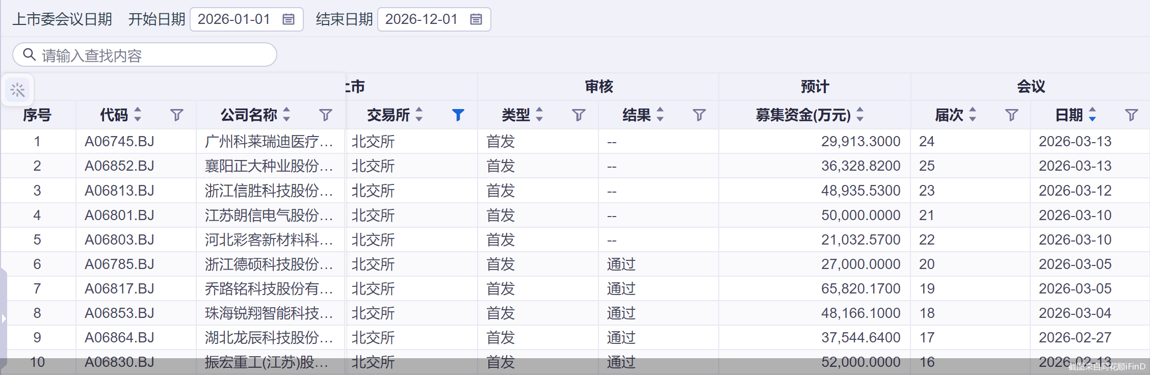 另外,经同花顺iFinD统计,截至3月13日,沪深北三大交易所年内累计安排35家企业IPO上会,其中北交所安排企业上会数量居首,达24家,占比近七成。