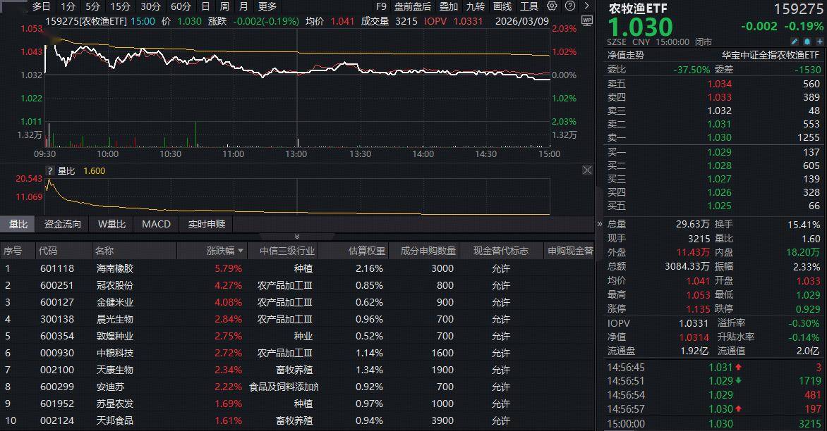 来源:沪深交易所等,截至2026.3.9。全市场唯一农牧渔ETF(159275)指唯一跟踪中证全指农牧渔指数的ETF。