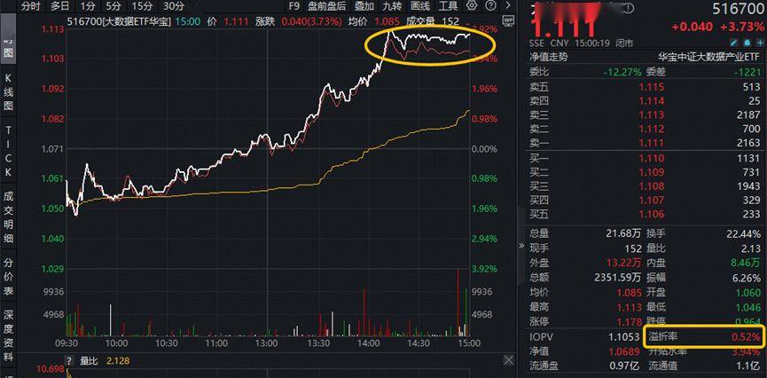 OpenClaw(俗称“龙虾”)火爆全网,带动推理侧需求提升,使得国内云计算需求显著升温,优刻得-U、拓维信息、中国长城、云赛智联4股涨停,重点布局国产算力、AI应用领域的大数据ETF(516700)午后强势拉升,场内价格最高上探3.92%,收涨3.73%,尾盘宽幅溢价,收盘溢价率高达0.52%,显示买盘资金更为强势,伴随成交放量,或有资金积极进场抢筹!