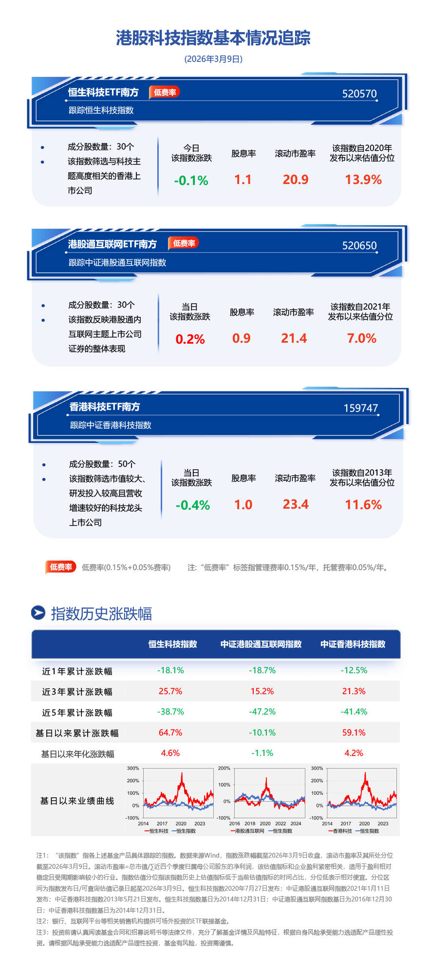 香港科技ETF南方(159747)紧密跟踪中证香港科技指数,中证香港科技指数从香港上市证券中选取50只市值较大、研发投入较高且营收增速较好的科技龙头上市公司证券作为指数样本,以反映香港市场科技龙头上市公司证券的整体表现。