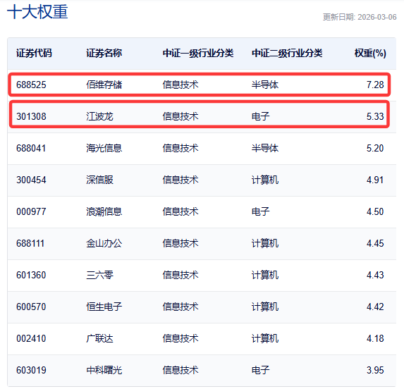 【信创ETF汇添富(560850)标的指数前十大重仓股】