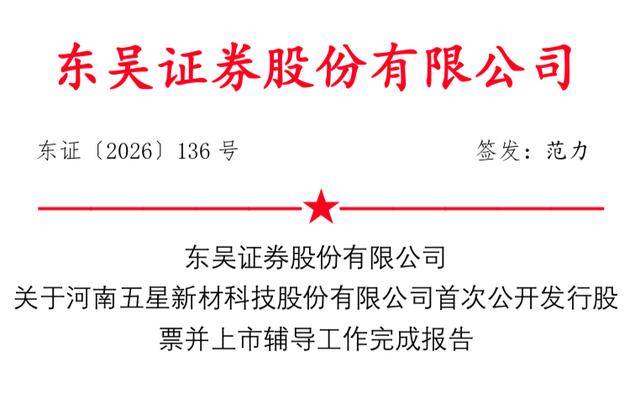 瑞财经 严明会 近日,河南五星新材科技股份有限公司(以下简称:五星新材)披露IPO辅导工作完成报告,辅导机构东吴证券。