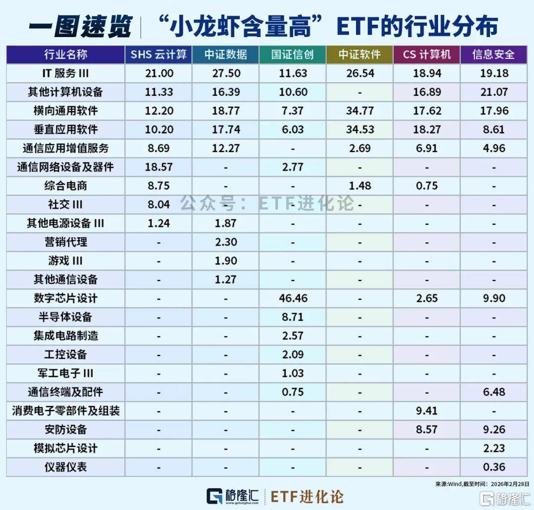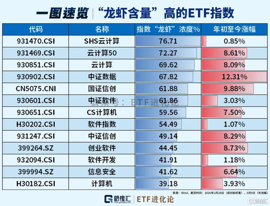 基金君整合上述机构的OpenClaw“小龙虾”受益概念股,统计出A股“龙虾含量”高的ETF指数有: