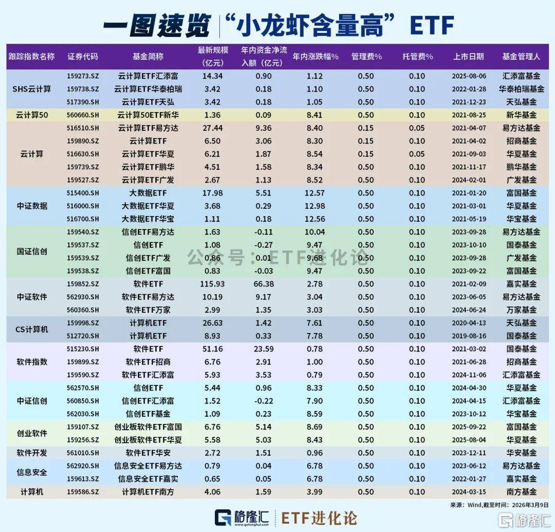 而跟踪中证软件指数的软件ETF(159852)是“吸金第一”的“小龙虾”ETF,年内净流入额66.38亿元,规模突破百亿。