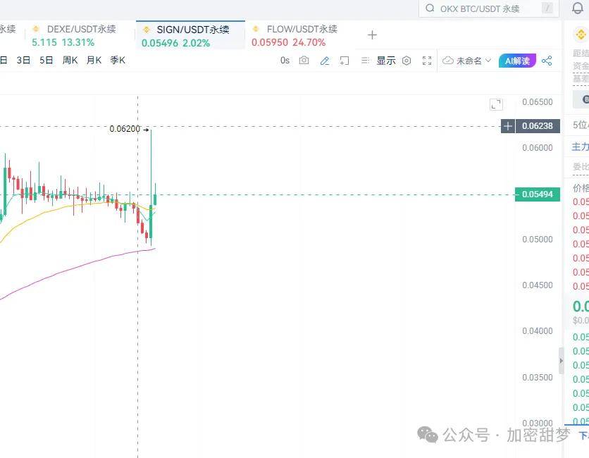 低市值+高控盘,最适合短线资金搏杀,一根针插到0.062 几乎把所有的空军全部打掉了,SIGN能再次反弹到0.058~0.059继续空一发。