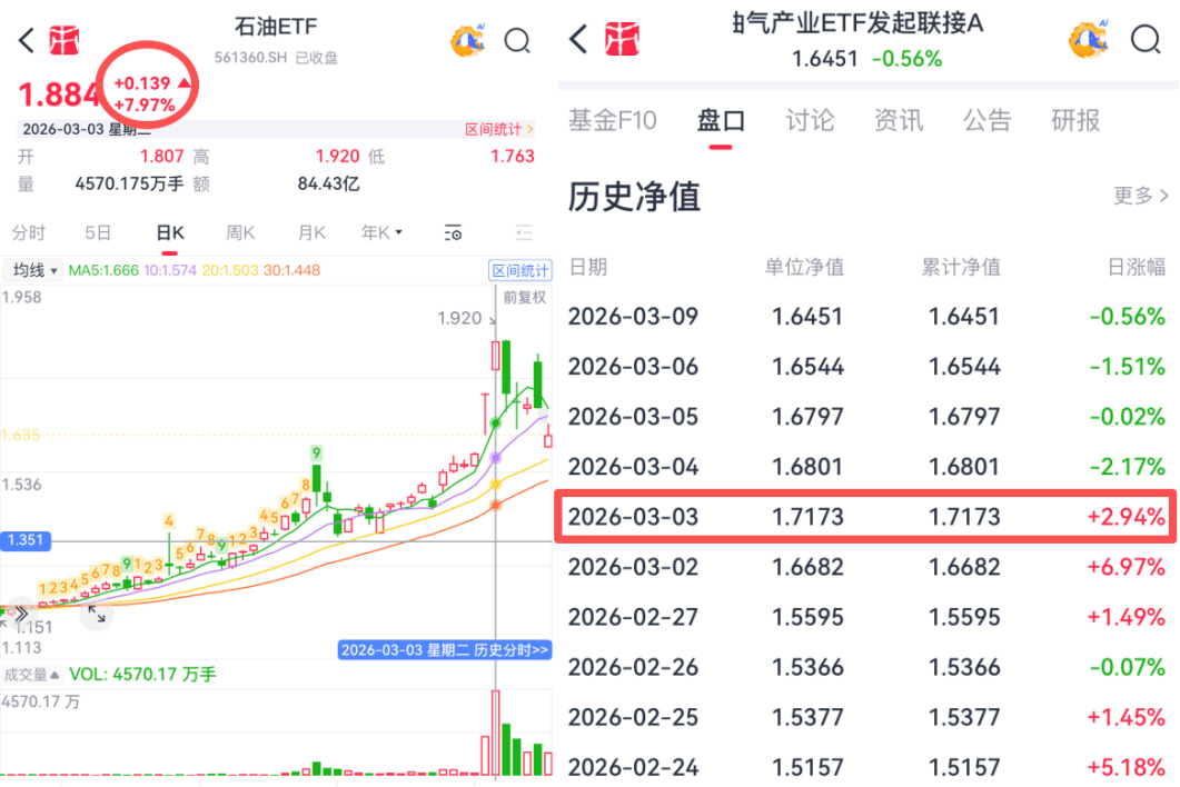 尤其是2026年3月以来,随着地缘政治因素引发油气资产暴涨,不少场外投资者发现自己购买的联接基金,涨幅远不及场内交易的ETF。