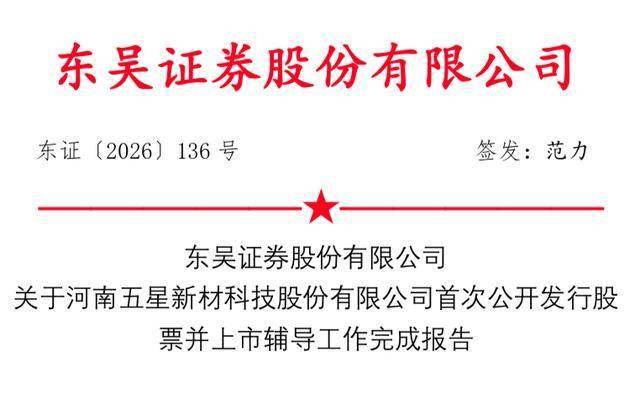 瑞财经 严明会近日,河南五星新材科技股份有限公司(以下简称:五星新材)披露IPO辅导工作完成报告,辅导机构东吴证券。