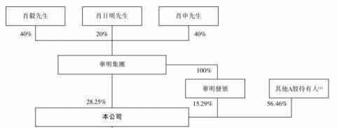 IPO前,肖毅、肖申、肖日明三人通过华明集团、华明发展,合计持股约43.54%,为控股股东。肖申为肖毅的弟弟,肖日明为两兄弟的父亲。