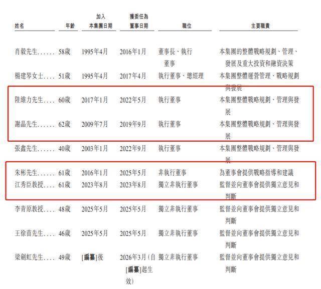 华明装备董事会目前由十名董事组成,包括五名执行董事、一名非执行董事及四名独立非执行董事。其中,但是陆维力、谢晶、朱彬、江秀臣均年过六旬。