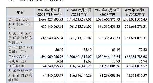 2022年至2024年及2025年上半年,朗信电气营业收入分别为6.68亿元、10.31亿元、13.01亿元、5.95亿元,净利润4531.10万元、8123.80万元、1.16亿元、4434.06万元,毛利率分别为16.74%、17.73%、18.68%、16.34%。
