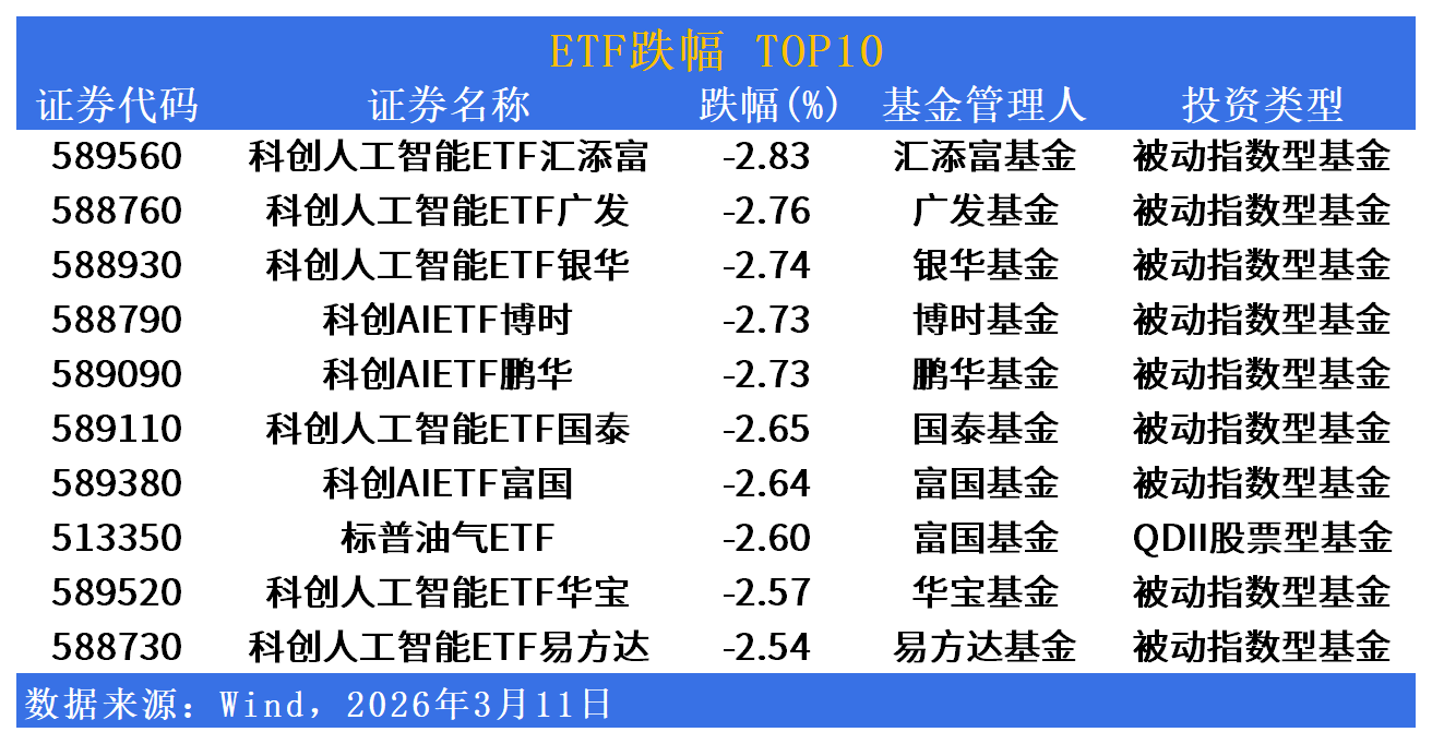 跌幅方面,科创人工智能ETF集体回撤,跨境商品型品种波动加剧