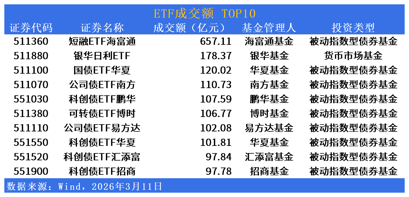活跃度方面,短融ETF成交突破657亿元,债券与商品型品种交投双旺