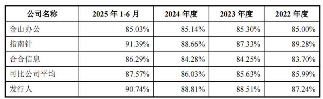企查查产品价格提升后,毛利率稳步上升,由2022年的87.24%逐年上涨至2025年上半年的90.74%,较同行业可比公司毛利率均值高出2-3个百分点。