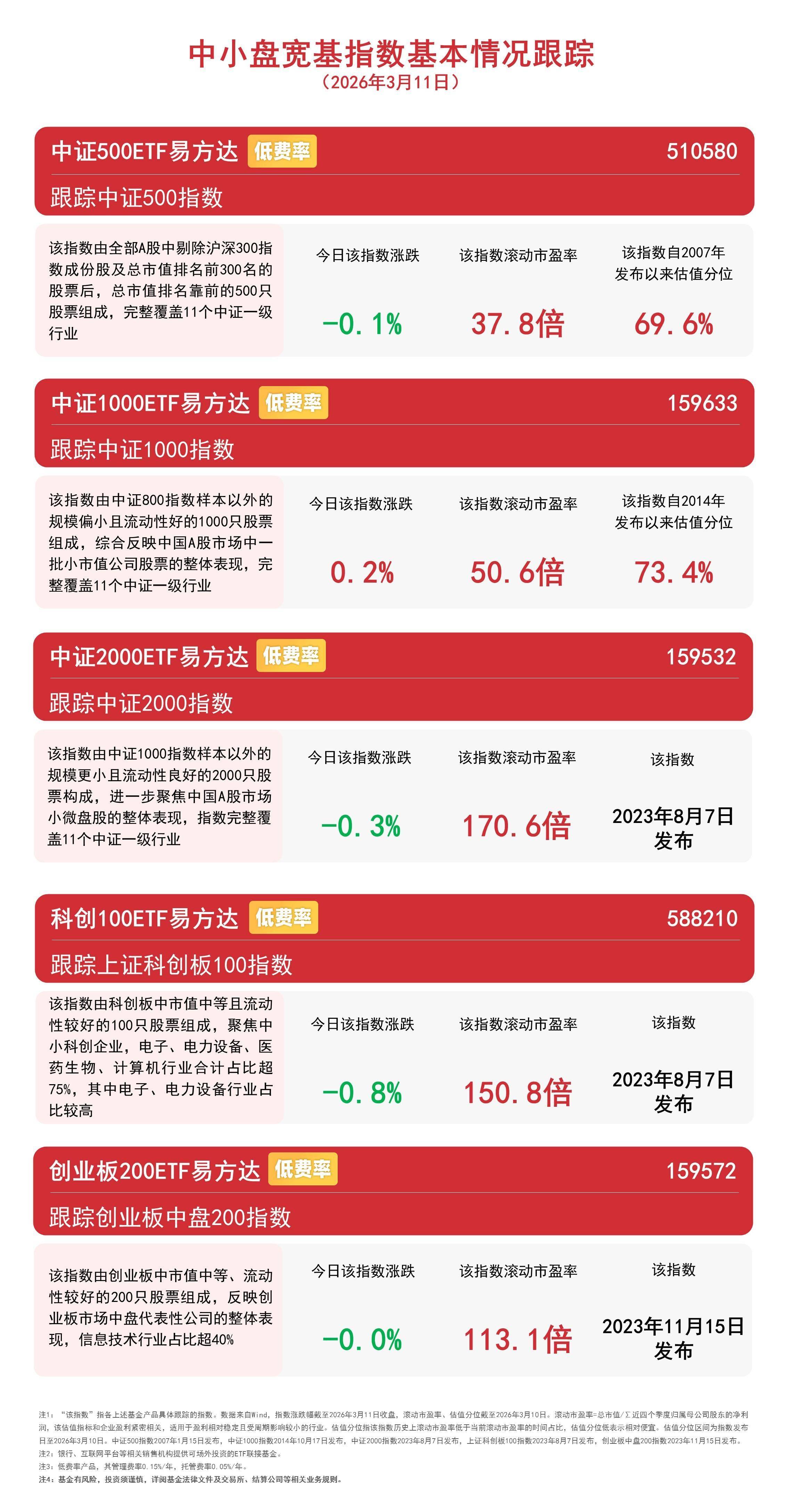 下一篇:中小盘宽基指数涨跌不一,关注中证1000ETF易方达(159633)、中证500ETF易方达(510580)配置机会