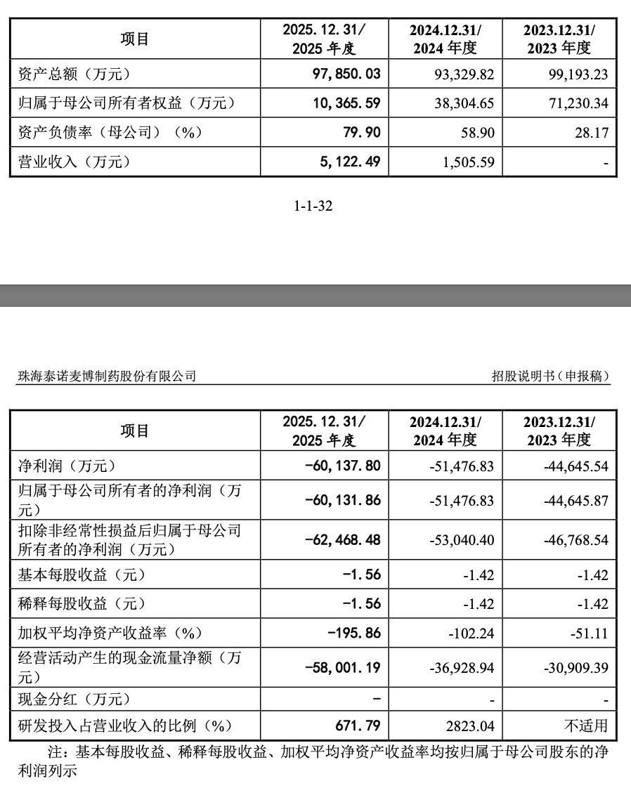泰诺麦博称,公司持续亏损主要系公司自设立以来持续专注于创新型生物药的开发,该类项目研发周期长、不确定性高、资金投入大。