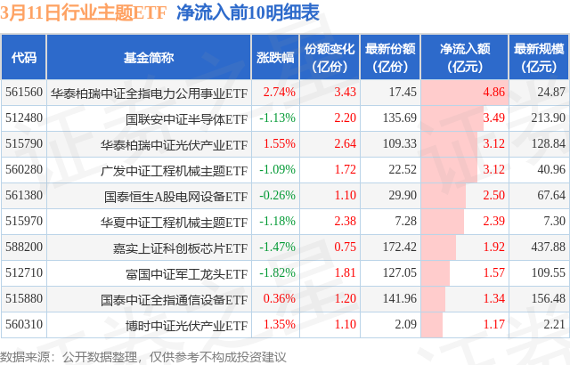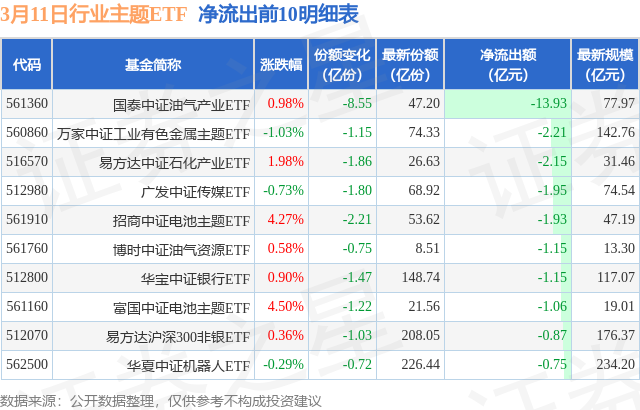 【ETF观察】3月11日行业主题ETF净流入6.8亿元