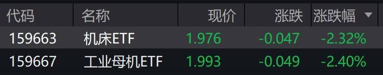 受盘面影响,机床ETF、工业母机ETF跌超2%。