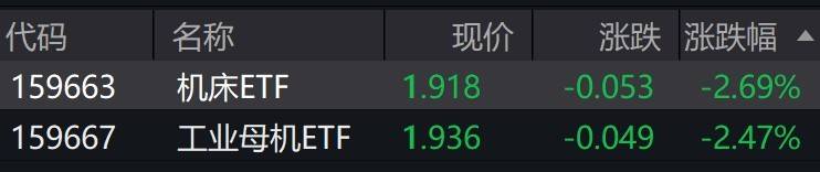 受盘面影响,机床ETF、工业母机ETF跌超2%。