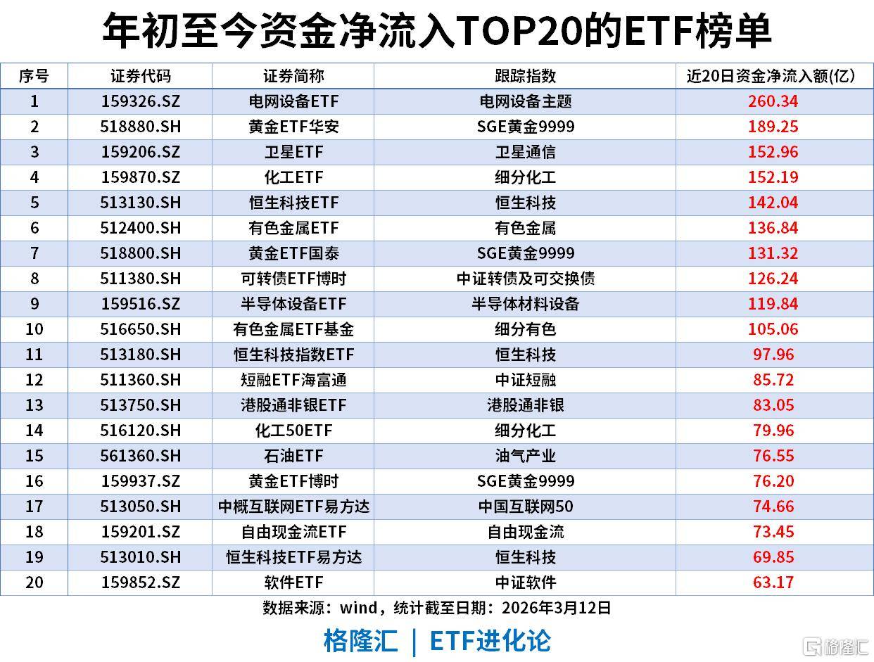 年初至今ETF资金净流入TOP20(截至2026-03-12)
