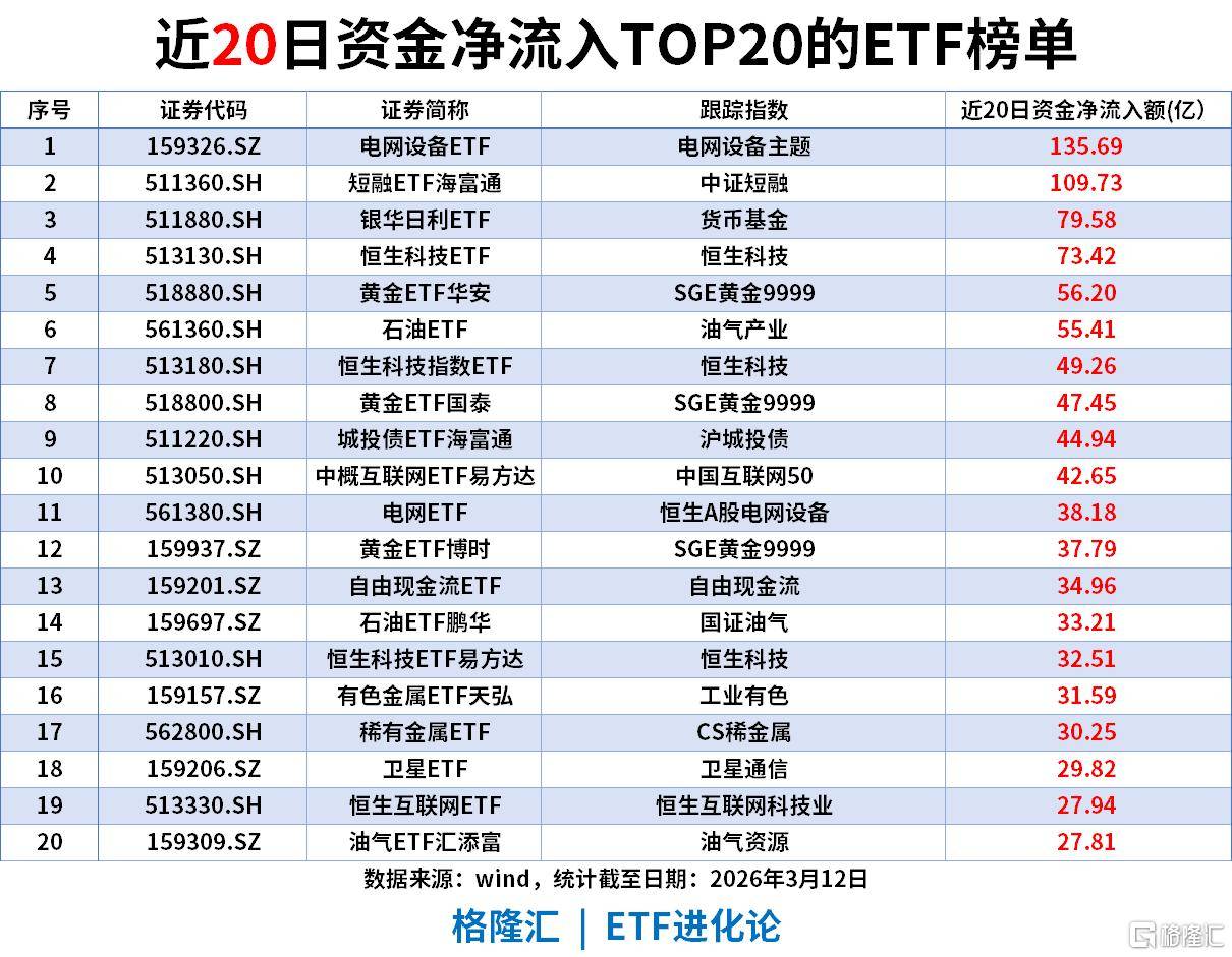 近20日ETF资金净流入TOP20(截至2026-03-12)