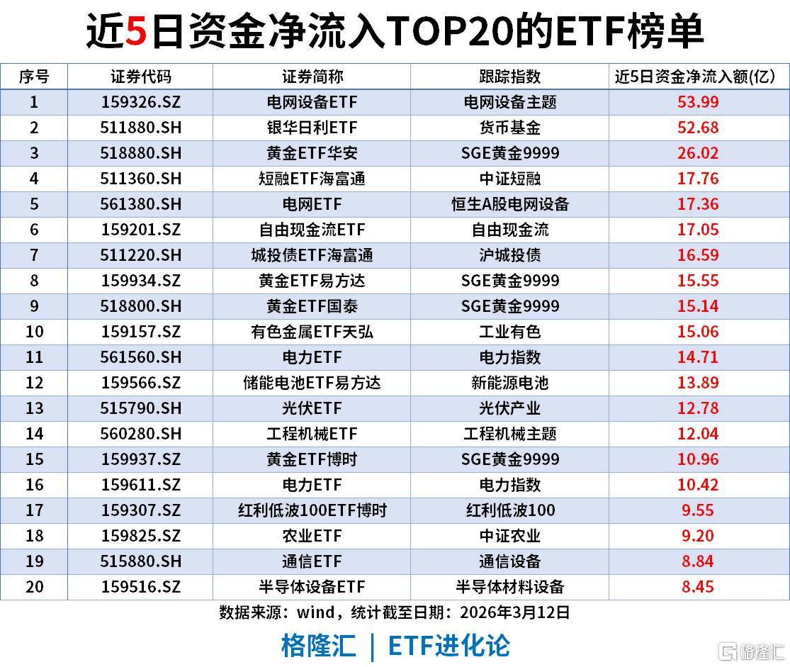 近5日ETF资金净流入TOP20(截至2026-03-12)