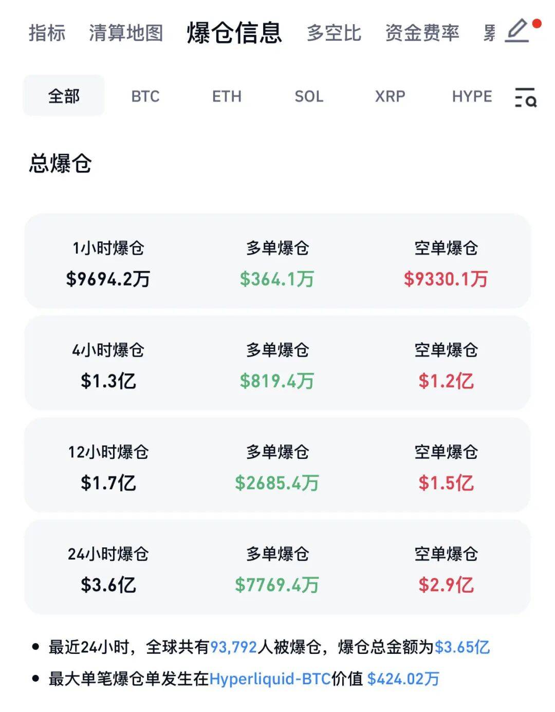 CoinGlass数据显示,最近24小时,加密货币市场共有超9万人爆仓,爆仓总金额为3.65亿美元。