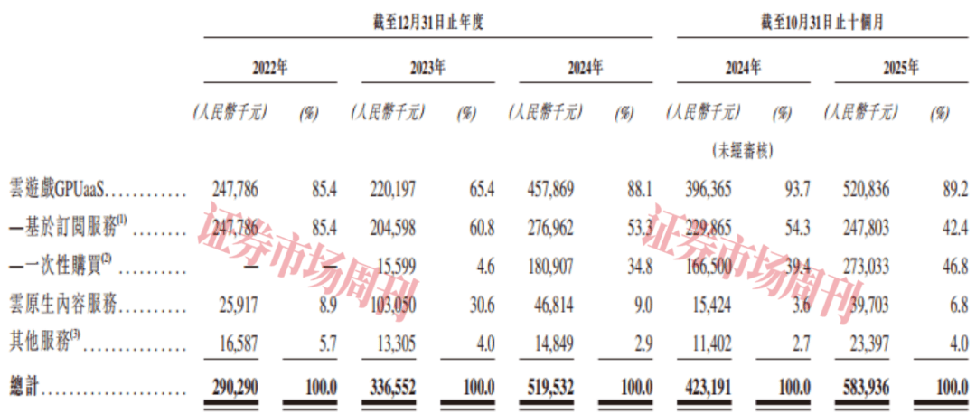 从收入来源看, 云游戏是海马云的核心应用场景,2022年至2025年1月-10月(以下简称“报告期”),云游戏GPUaaS分别占公司总收入的85.4%、65.4%、88.1%、89.2%,是其收入的主要来源。 与此同时,公司的实时云渲染能力在云游戏领域已得到充分验证,截至2024年末,海马云已为中国云游戏行业前十大市场参与者中的九大参与者提供了云游戏实时云渲染服务,并与包括中国移动、多家知名手机硬件制造商、头部的游戏平台和头部游戏开发商在内的市场参与者建立了长期合作伙伴关系。