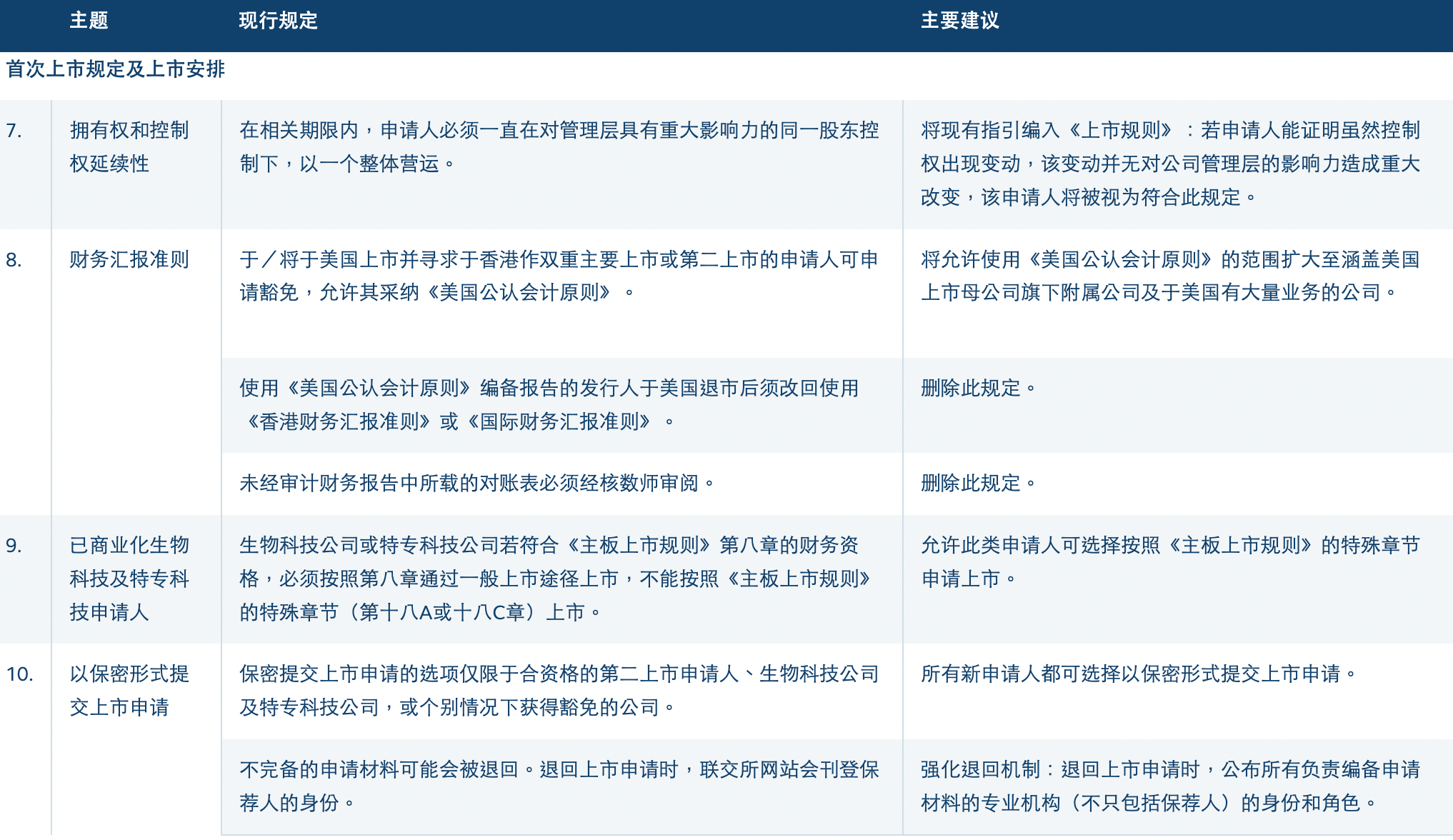 在首次上市领域,此次改革从公司控制权、财务汇报、科技企业上市路径、申请流程等多方面进行调整。