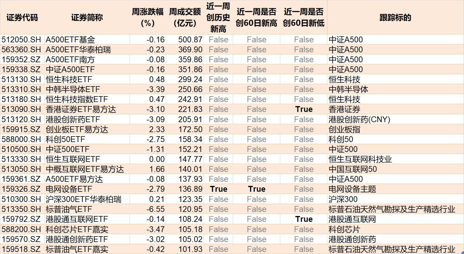 值得注意的是,香港证券、港股通互联网相关ETF本周价格创近60日新低。