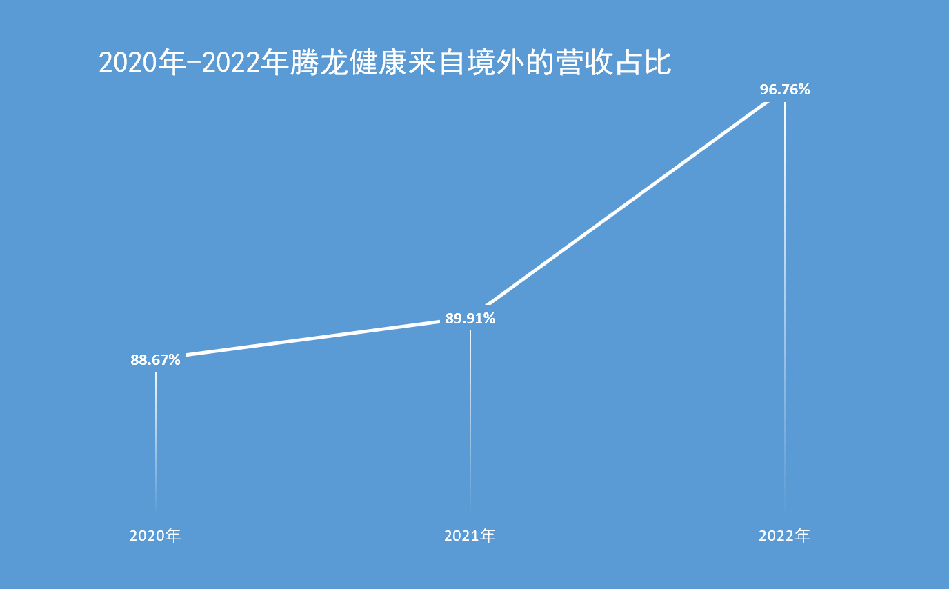 还有一个问题是,超高的境外营收占比,既是腾龙健康的增长来源,也是悬在头顶的长期风险。
