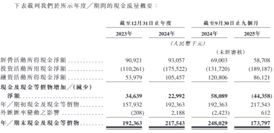 盈利能力下降的同时,财务健康状况也亮起红灯。2025年前三季度,公司经营活动所得现金净额为5870.8万元,同比下滑14.92%。而投资活动现金净流出持续扩大,同期达1.89亿元,是经营现金流的3.2倍。这意味着公司自身的“造血”能力已无法覆盖扩张所需的“失血”速度,导致当期现金及现金等价物净减少约4400万元。
