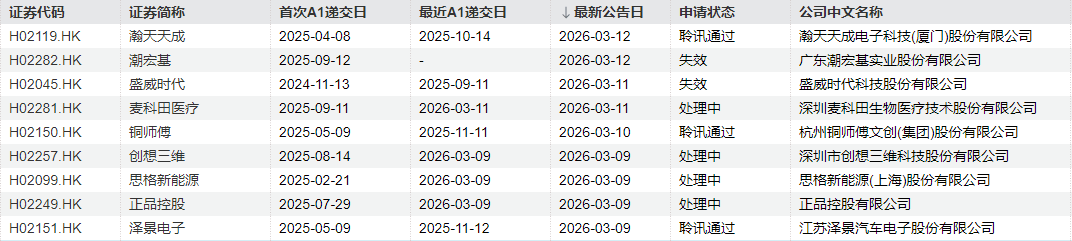 瀚天天成电子科技(厦门)股份有限公司、杭州铜师傅文创(集团)股份有限公司、江苏泽景汽车电子股份有限公司等聆讯通过。